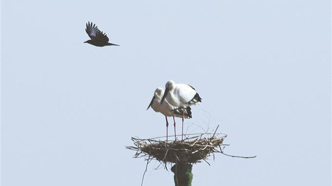 肇东千鹤岛首批东方白鹳“回家”