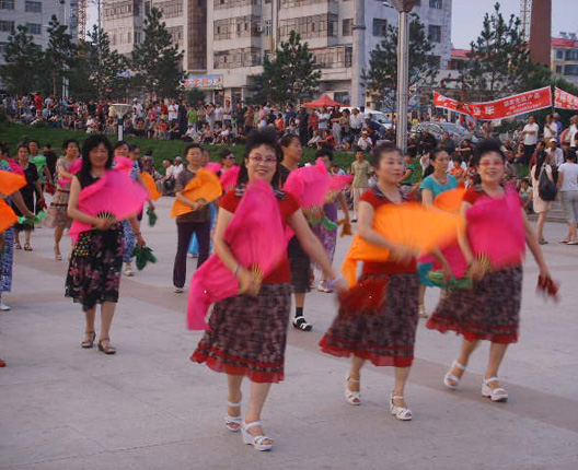 奥运圣火在龙江大地传递的喜讯让绿乡庆安的群众欢欣鼓舞,连日来,这个县城乡各族群众载歌载舞迎庆这一激动人心时刻的到来。图为庆安县“夕阳红”大秧歌队的老人们在县广场“闻讯起舞”。