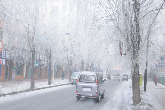 11月30日清晨,一场大雾不期而至,让绥化城区披上了一层薄薄的轻纱。树上,一串串洁白的树挂,晶莹剔透。市民们在匆忙中,也欣赏到了雾凇的美丽。