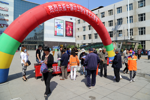 青冈县卫计局庆祝计生协会成立35周年宣传现场。
