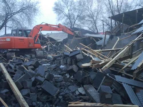 图为拆除机械在清违现场作业。