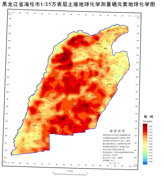 海伦市1/25万表层土壤地球化学测量硒元素地球化学图