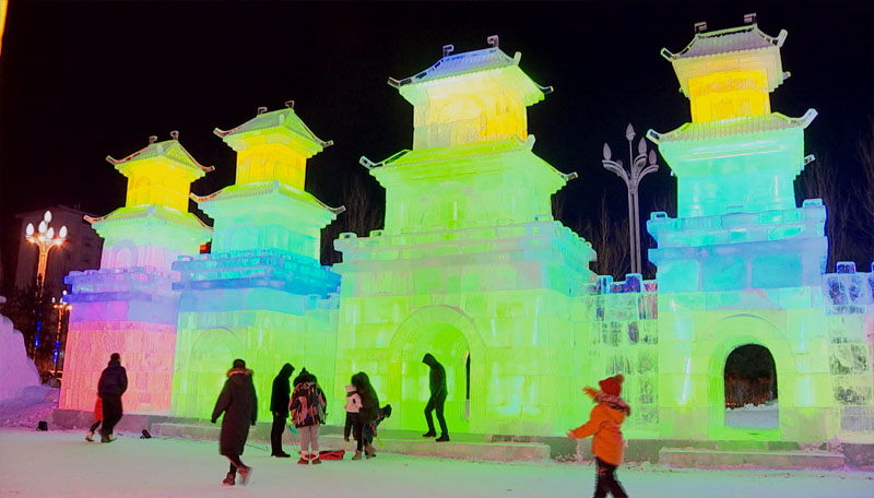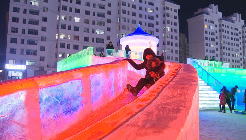 欢乐谷内,晶莹剔透的冰雕在七彩灯光的衬托下璀璨夺目,游客们纷纷驻足拍照,留下冬日里的梦幻记忆;孩子们坐在爸爸妈妈牵引的雪爬犁上悠闲自得,红彤彤的小脸儿写满快乐;冰雕滑梯上,穿戴厚实的游客从高处呼啸滑落,留下一串串爽朗欢快的笑声;冰场上,滑冰爱好者竞相追逐,仿佛冬日精灵般轻盈地在冰面滑翔;景区内,火红的灯笼墙释放着新年的气息,象征着新的一年红红火火,平安吉祥……市民们在冰雪交融的世界里,尽享冰雪快乐。