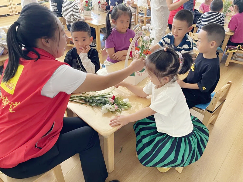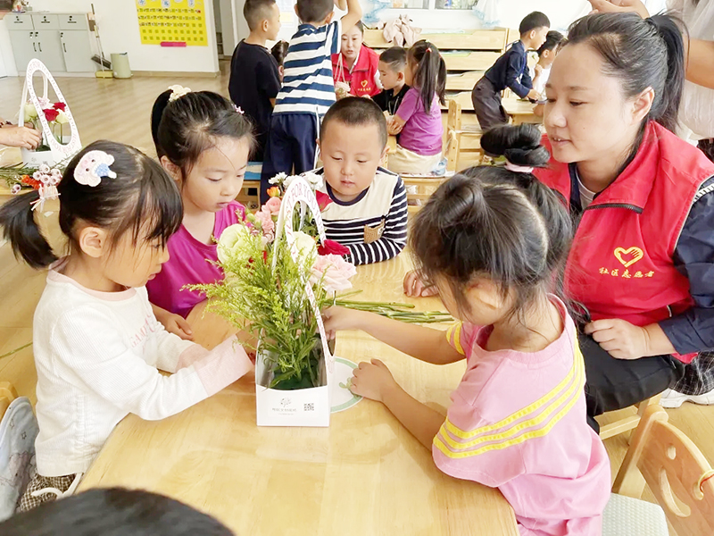 9月9日,在第41个教师节来临之际,北林区康庄街道西湖社区走进北林区第二幼儿园,开展“情暖教师节花香敬园丁”插花活动,为默默耕耘的教师们送上一份节日祝福。