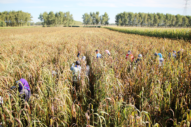 金秋时节,肇东市里木店镇永丰村的田野上,沉甸甸的谷穗随风摇曳,裕村香联合社的红谷小米进入收获季,农民们弯腰忙碌,脸上洋溢着丰收的喜悦。