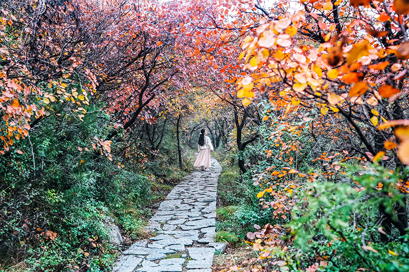 10月18日,一名女子在河南省焦作市博爱县寨豁乡大底村赏景(无人机照片)。