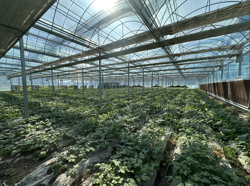 据了解,该智能大棚系统配备了环境传感器网络和智能调控装置,技术人员可远程控制棚内温度、湿度,一键启动通风、遮阳和喷淋设备,确保作物始终处于最佳生长环境。配合精准水肥一体化系统,可根据作物需求自动配比养分,实现了节水30%、节肥20%以上,既降低了人工成本,又节约了资源。与传统分散式大棚相比,连体式设计使土地利用率大幅提升超40%。其棚顶采用高强度覆膜材料与轻钢结构,具备抵御十级强风和25厘米积雪的能力。内部独特的保温层设计,使冬季夜间温差降低5℃以上,显著延长了蔬菜种植周期。