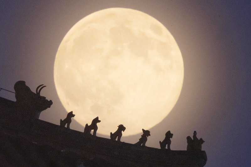 11月5日在黑龙江省齐齐哈尔市拍摄的“超级月亮”。 11月5日,“超级月亮”现身天宇,21时19分将达到满月的状态,这是全年最接近地球的满月,因此也是年度最大满月。