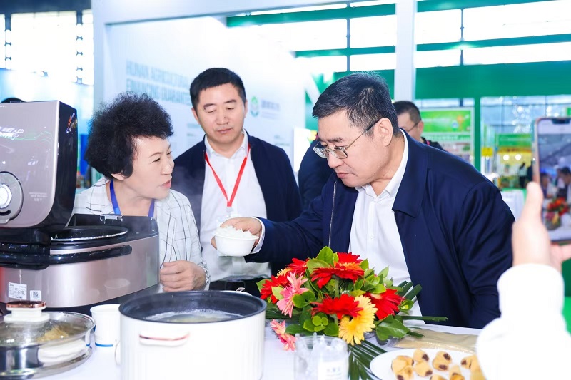 11月14日至17日,李敏带着庆源45号水稻磨制的大米,参展2025年全国粮油和大豆产业博览会暨第二十六届中国中部(湖南)农业博览会。她现场焖了一锅又一锅香气四溢的米饭,“刮”起了东北寒地杂交水稻大米的“醇香风”,诠释了“有一种米香叫庆安香”的价值,展示了国家级水稻制种大县的硬核。带去的150公斤大米被抢购一空,和1家销售公司签订了长期合作协议,引起米商、消费者的关注。