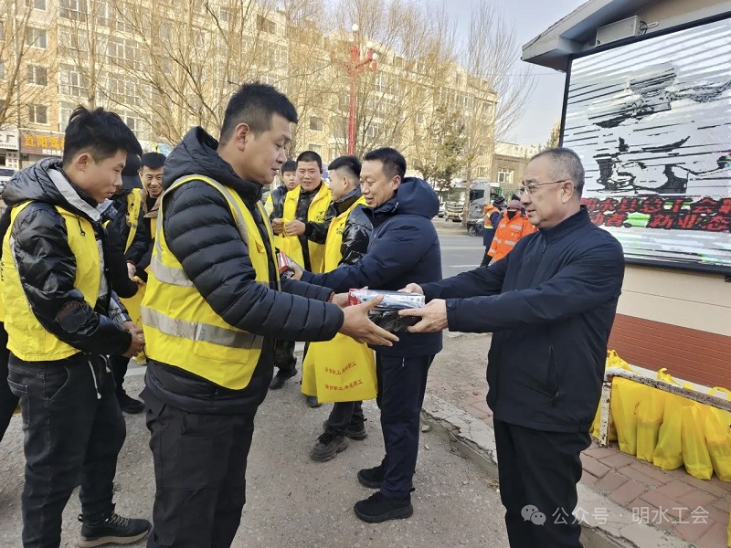 东北网绥化11月28日讯(李欣桐 特约记者 孟维欣 全媒体记者 许宏伟)11月24日,明水县委社会工作部携手县总工会、团县委、新时代文明实践中心开展“送温暖”“冬日暖‘新’”主题慰问活动,将410套防寒物资精准送达环卫工人、美团外卖骑手、快递员及志愿者手中,传递党和政府关怀与社会温情。