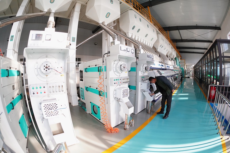 12月2日,位于北林区秦家镇的黑龙江新地善粮米业有限公司的制米车间、装袋车间等正在生产。