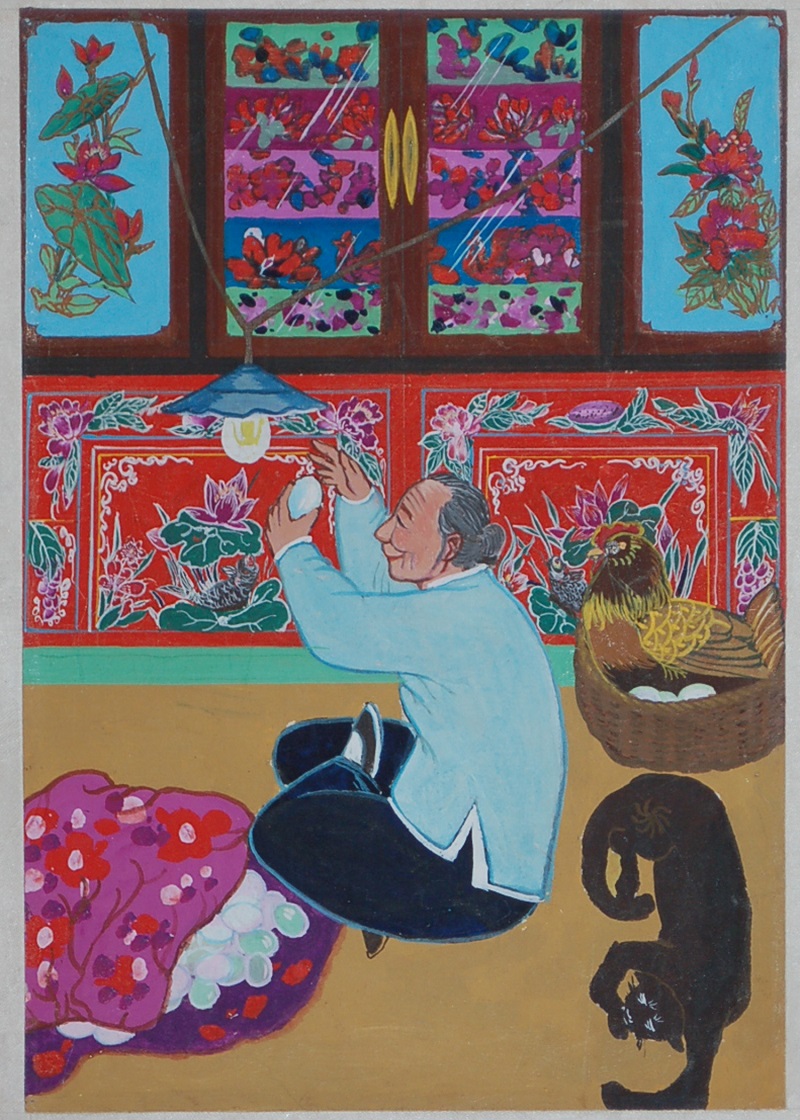 当时作者多数都是当地朴实的农民,他们刚放下锄头或锹镐,也顾不上拍打身上的灰土,马上又拿起小巧的画笔,画天画地画生活。
