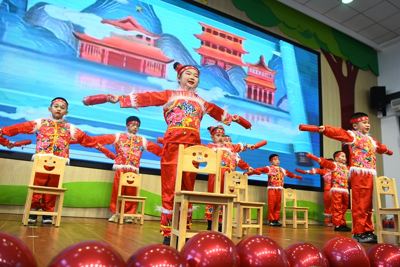 2025年12月31日,黑龙江省绥化市北林区第三幼儿园的小朋友在表演歌曲《中国范儿》。