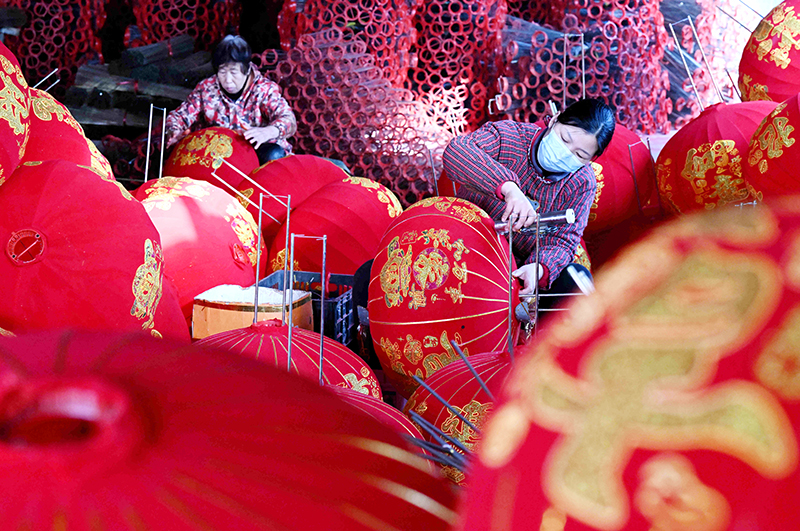 岁末年初,河北省石家庄市藁城区屯头村内一派繁忙景象,当地村民赶制藁城宫灯,供应春节市场。藁城宫灯是河北省级非物质文化遗产,目前已有18个系列300多个品种,产品远销全国各地。