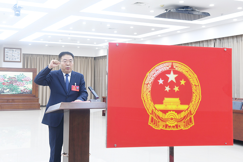 当选的市人大常委会主任陈国彬进行宪法宣誓