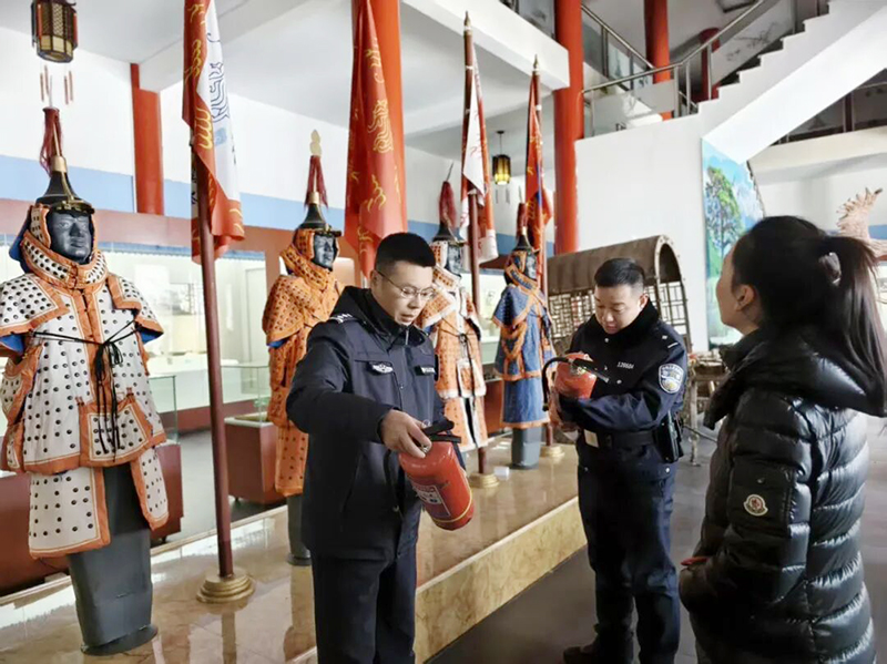 民警深入展馆展厅、文物库房、配电房等关键区域,重点检查防火安全措施落实情况,逐一排查电路线路是否存在老化、大功率电器是否合规使用等情况,严格检查紧急逃生通道是否畅通、安全标识是否清晰醒目,确保应急照明、疏散指示标志正常启用,从源头杜绝安全隐患。考虑到展馆周边路面易积冰雪,给游客出行带来不便,东风派出所民警辅警主动延伸服务触角,在安全检查后又对展馆出入口、台阶坡道等重点区域的积雪积冰进行集中清理,降低出游风险。