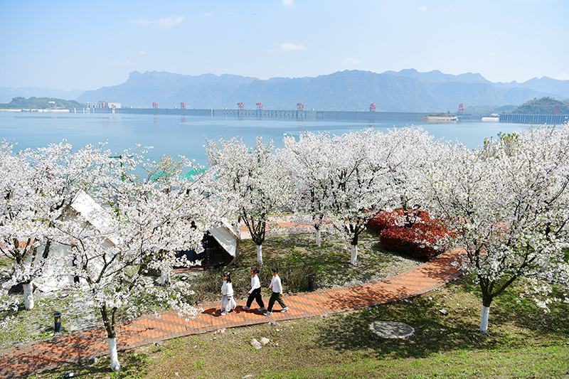 3月28日,孩子们在湖北省宜昌市秭归县屈原故里文化旅游区赏花游玩。 新华社发(