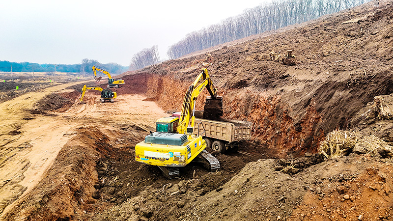 走进项目施工现场,热火朝天的奋战景象扑面而来,挖掘机铁臂挥舞、运输车往来穿梭、压路机稳步碾压,各类大型机械轰鸣运转、高效联动,施工人员分工明确、协同发力,溢洪道土石方开挖、边坡修整、基础处理等关键工序同步推进、有序落地,每一处都涌动着攻坚奋进的磅礴力量。