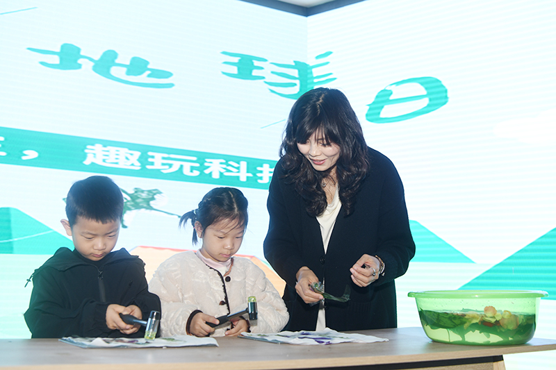 图②4月21日,绥化市北林区第二幼儿园的孩子们在科技馆用树叶和花瓣进行植物拓印。
